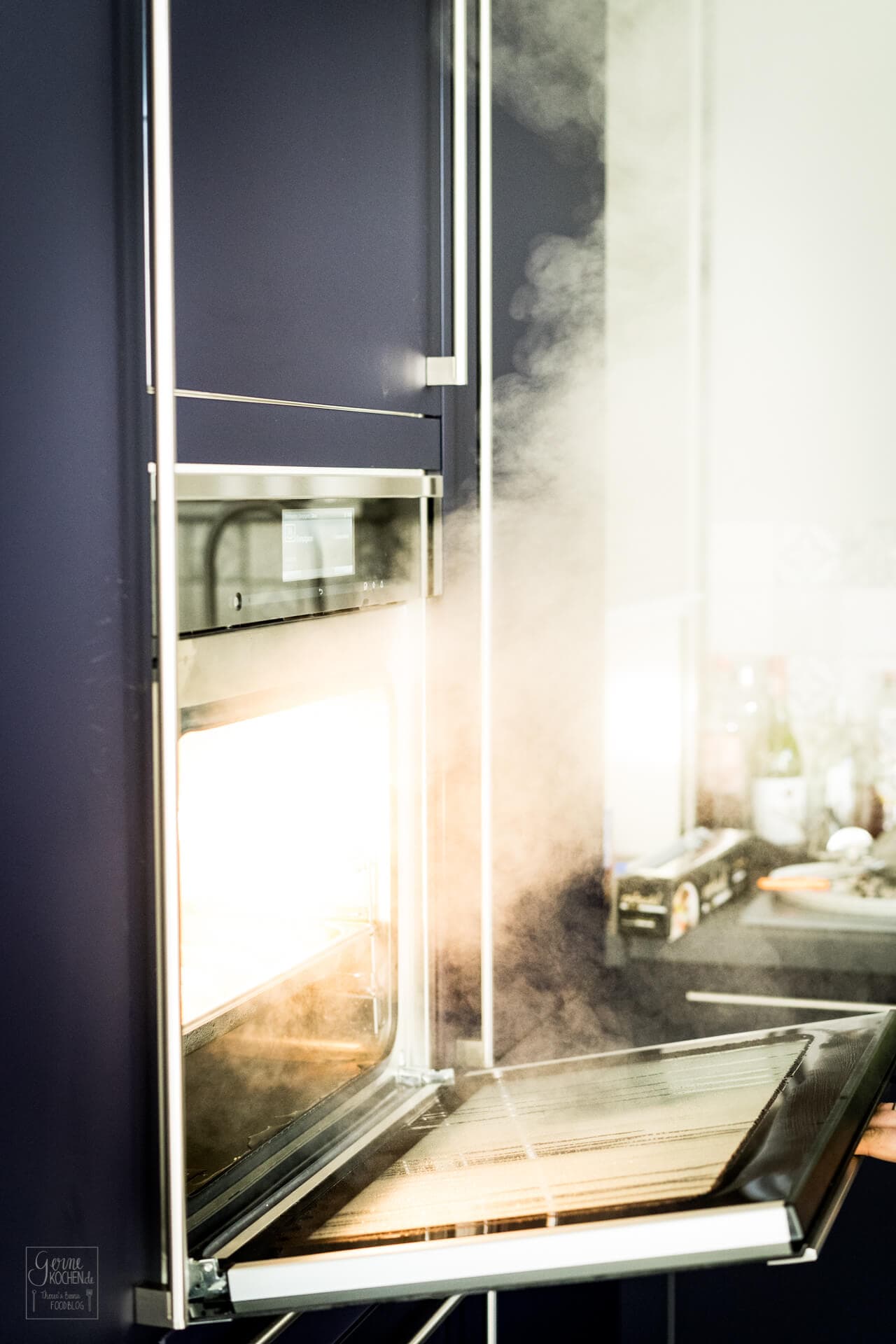 Der Dampfbackofen hat nämlich mehrere Programme (man kann auch selber welche anlegen), u.a. ein Hefeteigprogramm, welches den Teig schön warm gehen lässt. Wer uns auf Instagram folgt, der konnte genau sehen, was wir gemacht haben. Der Ofen an sich heizt bis 250°C, eine Pizza ist also ebenso möglich wie das Bedampfen von Gemüse.