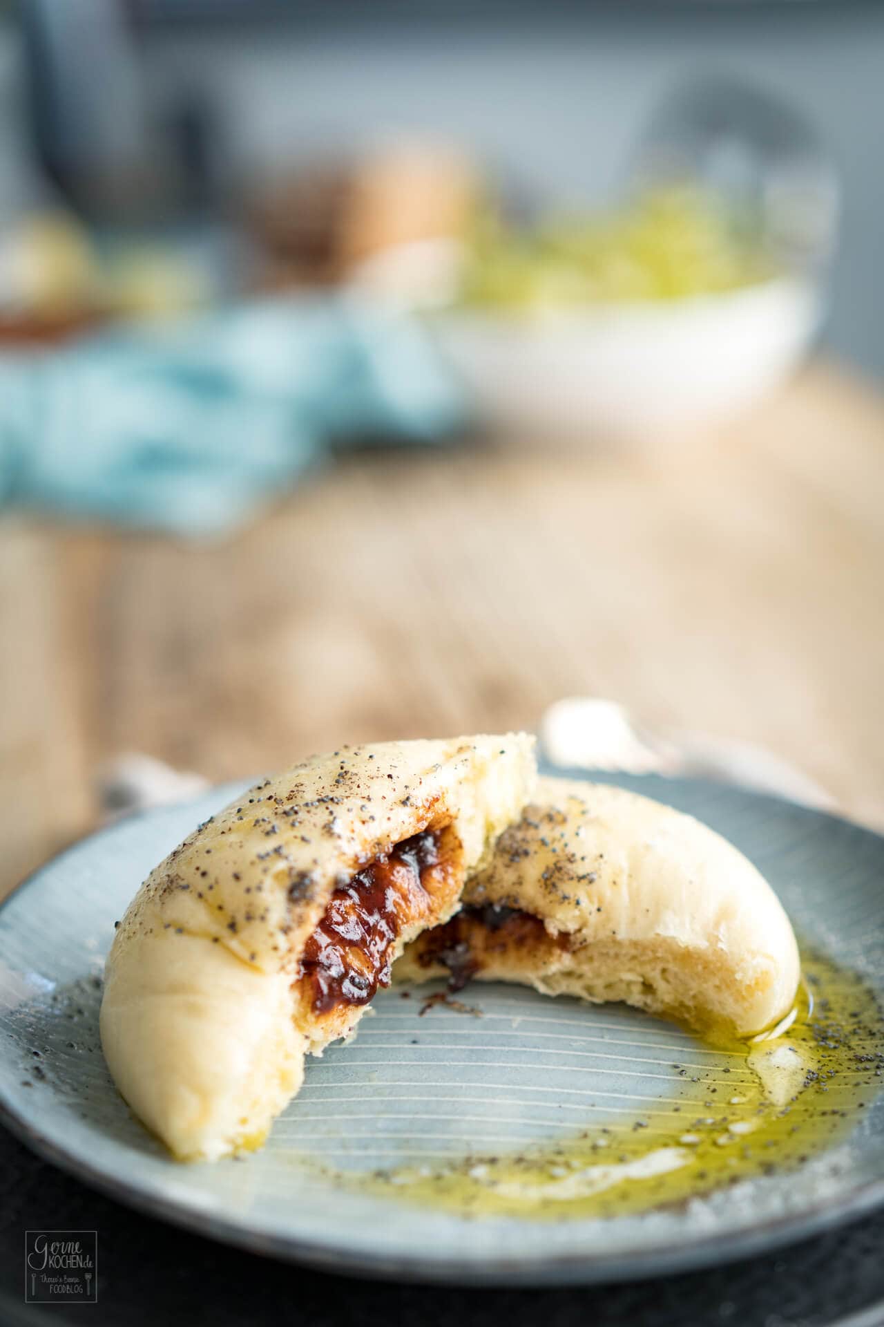 Direkt ein Geständnis: Ich habe noch nie Germknödel oder Dampfnudeln gegessen, geschweige denn selber gemacht. Als die Jungs zur Miele Kitchentime eingeladen haben, um den Dampfbackofen von Miele näher unter Augenschein zu nehmen, war klar, es muss ja irgendwas zu essen geben und zwar aus dem Dampfbackofen. Da kam mir die Idee mit dem Germknödel. Und ich hätte mir kein besseres Rezept ausdenken können, zum einen, weil es echt richtig lecker war, zum anderen haben wir damit mehrere Funktionen direkt ausprobieren können.