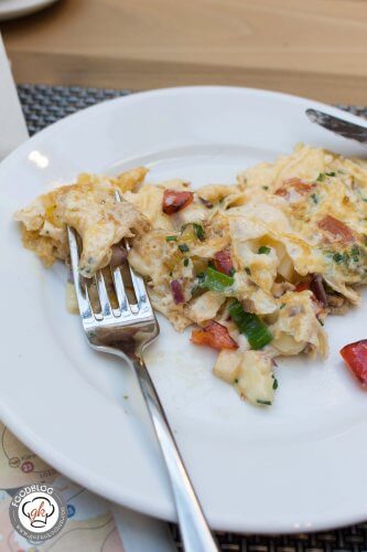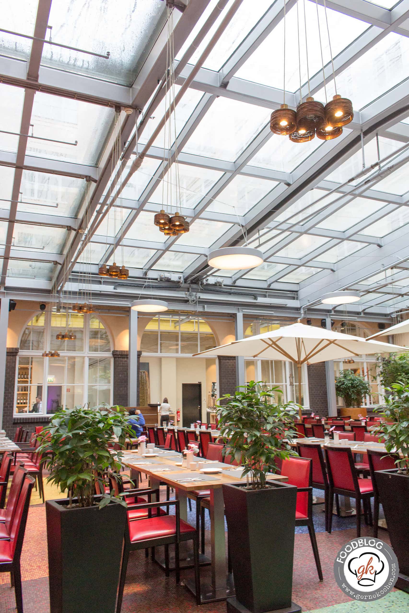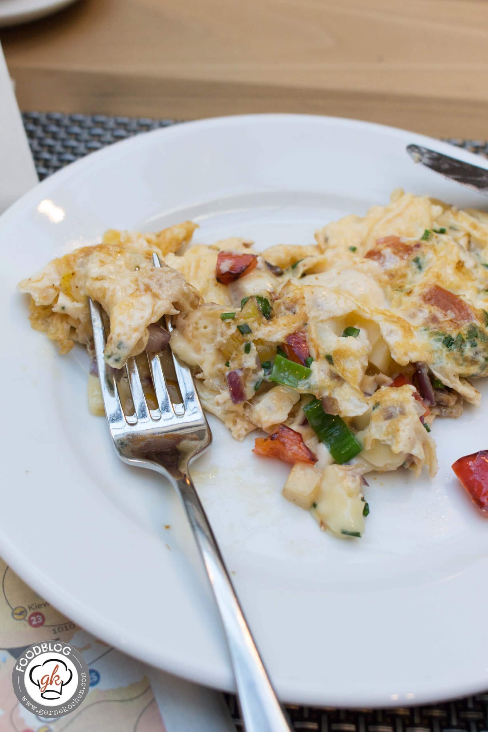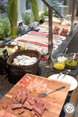 Jeder Morgen begann mit einem tollen Frühstück in dem wunderschönen Innenhof des Mövenpick-Hotel Berlin. Dieser Innenhof war überdacht und die Überdachung wurde bei schönem Wetter aufgefahren, sodass man quasi im Freien frühstückte. Beim Frühstücksbüffet war alles da was das Herz begehrt: Smoothies, frisch gepresste Säfte, Obst und Müsli, Würsten, Rührei und vieles mehr. Mein Herz schlägt natürlich immer höher, wenn ich frischen Lachs bekomme und Bennis Gelüste wurden mit den warmen Speisen befriedigt. Nun kommen wir zu meinem Highlight, trotz Lachs, die Omelette-Station – jeden Morgen ein frisches Omelett, am Liebsten mit Käse und Gemüse, total lecker. Was wir beide ebenfalls noch toll fanden war, dass es auch schweizerische Spezialitäten, wie z.B. das Bündnerfleisch oder den Appenzeller gab. Ach, eine Sache habe ich noch gar nicht erwähnt: Das Vollkornbrot war super lecker, so lecker, dass es sogar Benni geschmeckt hat, der normalerweise nur mein selbst gebackenes Vollkornbrot mag.