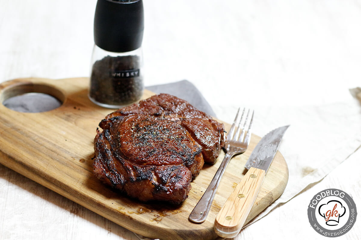 Als unser Beefer ankam habe ich mich gefreut wie Bolle, doch da unser Umzug kurz bevor Stand, hat das gute Stück erstmal im Karton warten dürfen. Als wir dieser dann aber hinter uns gebracht war konnte meine bessere Hälfte mich kaum zurück halten und so schnell wir es geschafft hatten, wurde das gute Stück angeschlossen und es wurde gebeeft… Unseren ersten Versuch haben wir mit einem Schweinekotelett gemacht… Das Rezept könnt ihr in Kürze auch hier bewundern, aber hier erstmal das Highlight des Tages… Ein trocken gereiftes Rib-Eye Steak von der Grand Mu, welches unser Der Ludwig für den Beefer ans Herz gelegt hat und was soll ich sagen? Es war der Wahnsinn, der absolute Hammer. Wir haben selten so ein tolles Steak gegessen und während ich diese Sätze schreibe läuft mir jetzt schon wieder das Wasser im Mund zusammen. Was genau die „Grand Mu“ ist, lest ihr am besten direkt bei Der Ludwig!