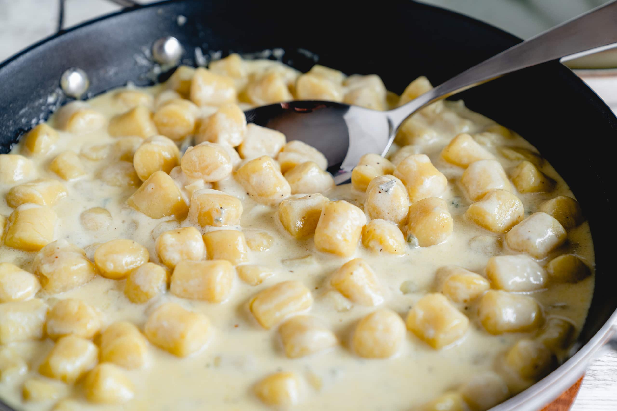 Dieses Rezept ist ja eigentlich kein klassisches Pasta Rezept in dem Sinne, sondern eine Sauce. Da es aber eine unserer liebsten Pastasaucen ist, bringen wir unsere Gorgonzolasauce natürlich auch hier unter. Wir essen sie am liebsten zu Gnocchi, sie schmeckt aber auch richtig gut zu Spaghetti… Kleiner Geheimtipp: Schnitzel mit dieser Sauce servieren. Ein Träumchen, sag ich euch!