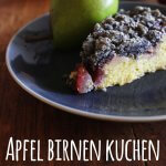 Apfel und Birnen schälen, anschließend in kleine Stücke schneiden und gleichmäßig auf den Teig verteilen.