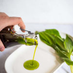 Nun gebt ihr das Öl durch einen Kaffeefilter oder durch ein Sieb mit Küchenpapier. Dies dauert zwar seine Zeit, dafür hält es sich länger und wird richtig schön leuchtend grün.