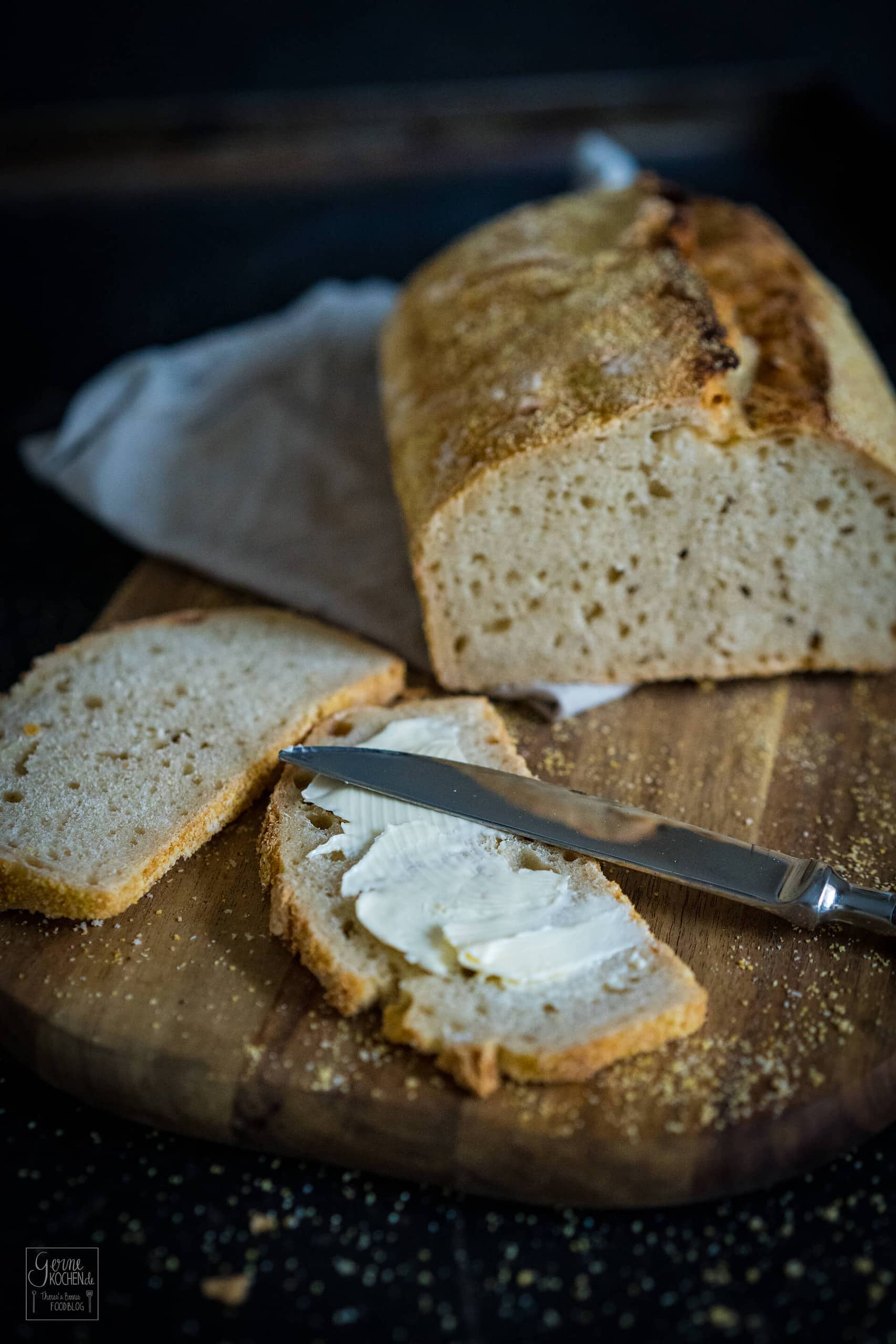 Eine Kastenform einfetten und mit Maisgrieß ausstreuen.