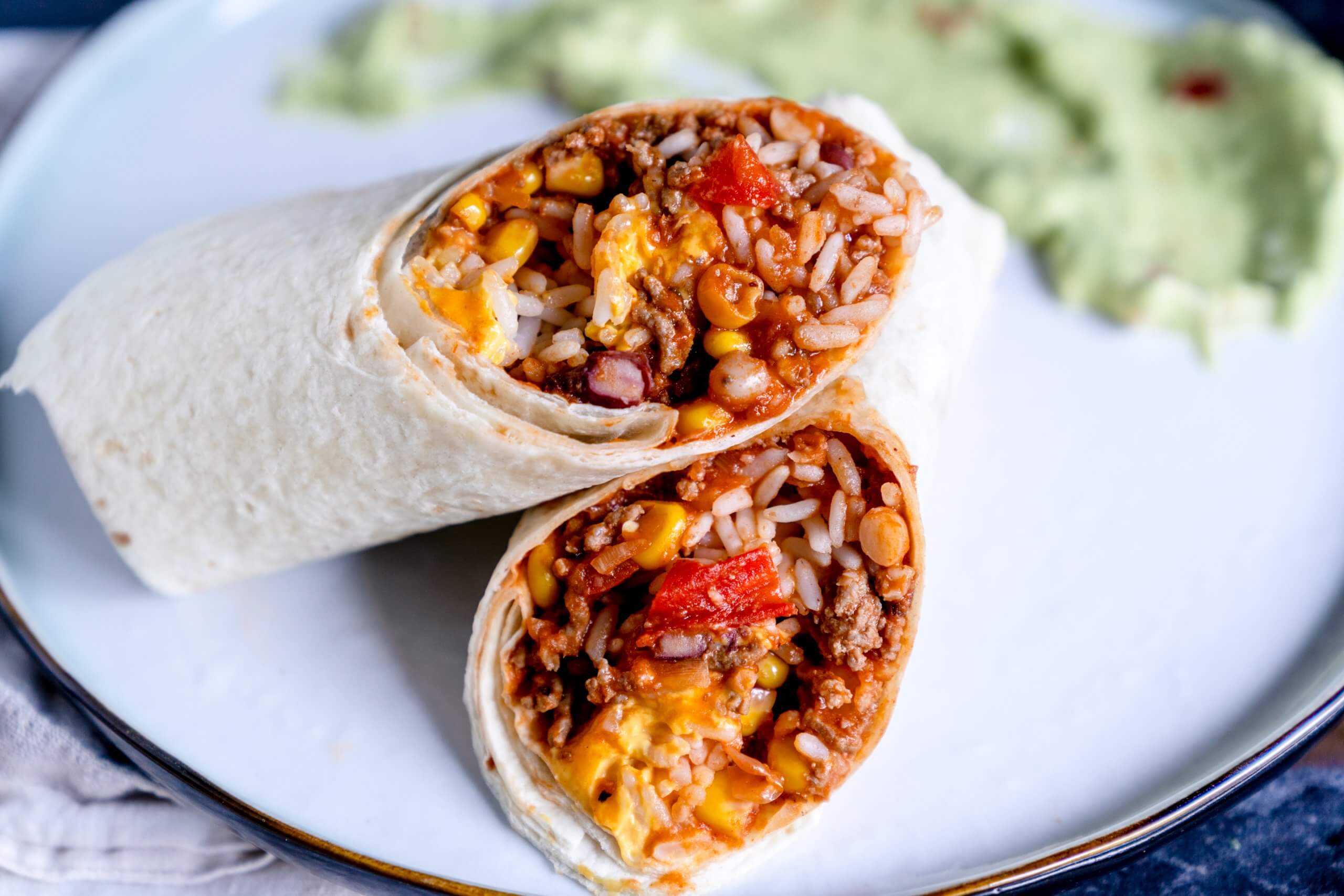 Tortillas/Wraps in der Mikrowelle leicht erwärmen und dann mit 2 Scheiben Käse belegen. Darauf verteilt ihr dann 3-4 EL Hackfleischmischung (alles abhängig von der Größe der Wraps) und 1 EL Reis.