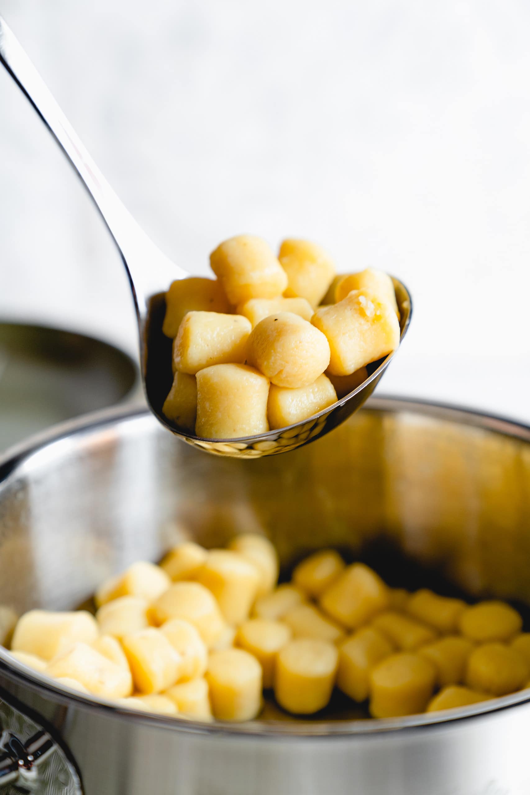 Ihr nehmt nun ein Stück der Masse und rollt diese auf eine bemehlten Fläsche mit zwei Händen zu einer Wurst. Danach könnt ihr mit einem Teigschaber oder Messer immer kleine Stücke abschneiden, diese dann im Wasser kochen, bis sie oben schwimmen.