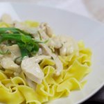 Den Estragon klein hacken und zusammen mit der Creme fraiche hinzugeben, etwas reduzieren lassen, dann das Hähnchen dazu geben.