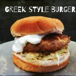 Unterhälfte... Krautsalat drauf... Burger-Patty... Tzatziki... fertig ist der Greek Style Burger.