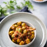 Paprika edelsüß und das Harissa Gewürz für 2-3 Minuten in einem kleinen Topf mit dem Olivenöl anrösten und dann Oliven, Tomaten und Knoblauch dazu geben und bei milder Hitze für 10 Minuten köcheln lassen.