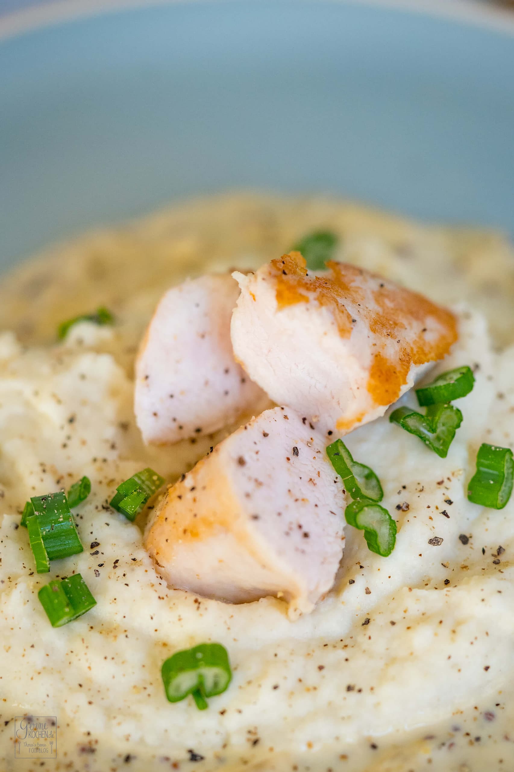 Den Blumenkohl nun mit einem Pürierstab oder in einem Mixer so fein wie möglich mixen und mit Muskat, Salz und Zitronensaft abschmecken.