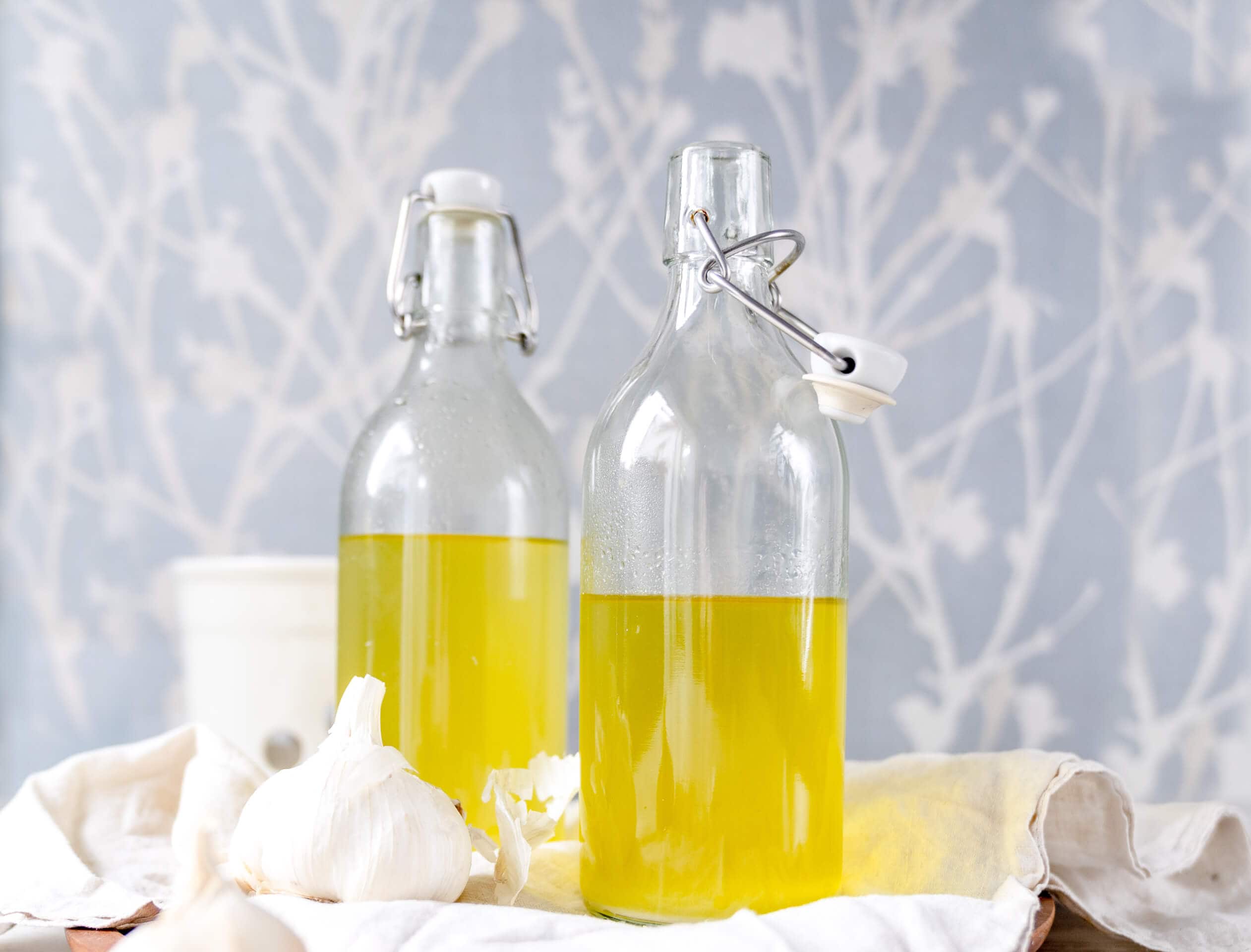 Füllt das Knoblauchöl in eine Spritzflasche. So könnt ihr das Ganze super dosieren und habt es immer griffbereit.
