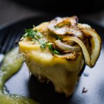 Die Krautkrapfen mit den Zwiebeln und dem Apfelmus servieren.
