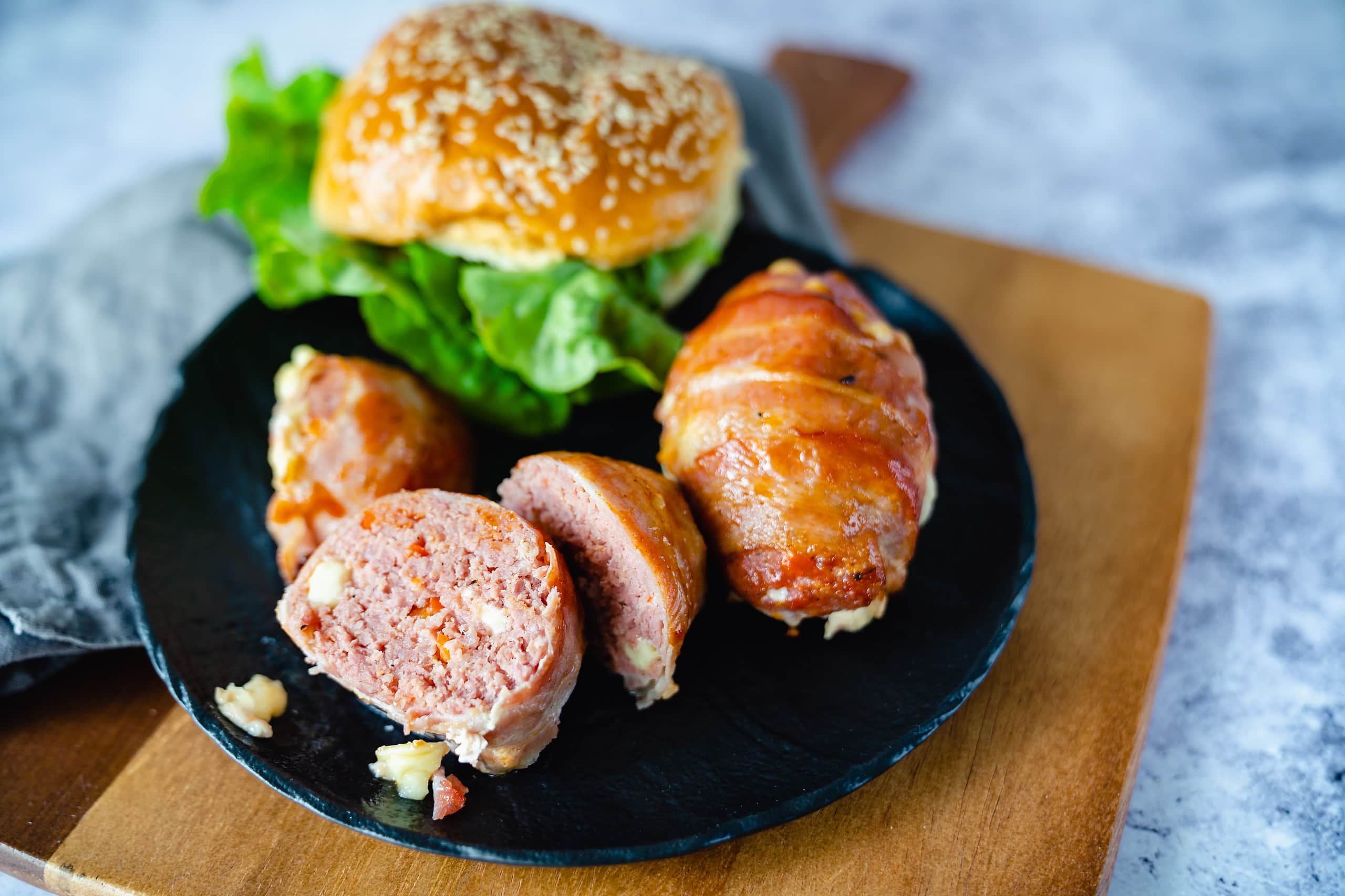Diese Mini Bacon Bombs sind mega einfach und schmecken einfach nur fantastisch. Dazu ein leckerer Bun mit Mayo, Coleslaw und etwas BBQ Sauce und fertig ist ein Bacon Bomb Burger.