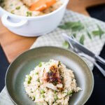 Risotto landet bei uns regelmäßig auf den Tisch. Es ist einfach zu machen und bringt immer einen tollen Geschmack mit sich. Dieses in einer cremigen Variante mit Erbsen und dazu gab es Saltimbocca vom Seeteufel.