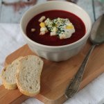 Das Rapsöl in einem Topf erhitzen und Zwiebel, Apfel und Rote Bete andünsten. Mit 400 ml Wasser ablöschen und Gemüsebrühepulver zugeben. Abgedeckt nun 20 Minuten köcheln lassen.