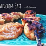 Den Ofen in der Grillstufe auf Maximum vorheizen und dann das Hähnchen in kleine Stücke schneiden und auf die Spieße stecken.