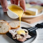 Dabei die flüssige Butter unter ständigem Rühren langsam hineingießen.