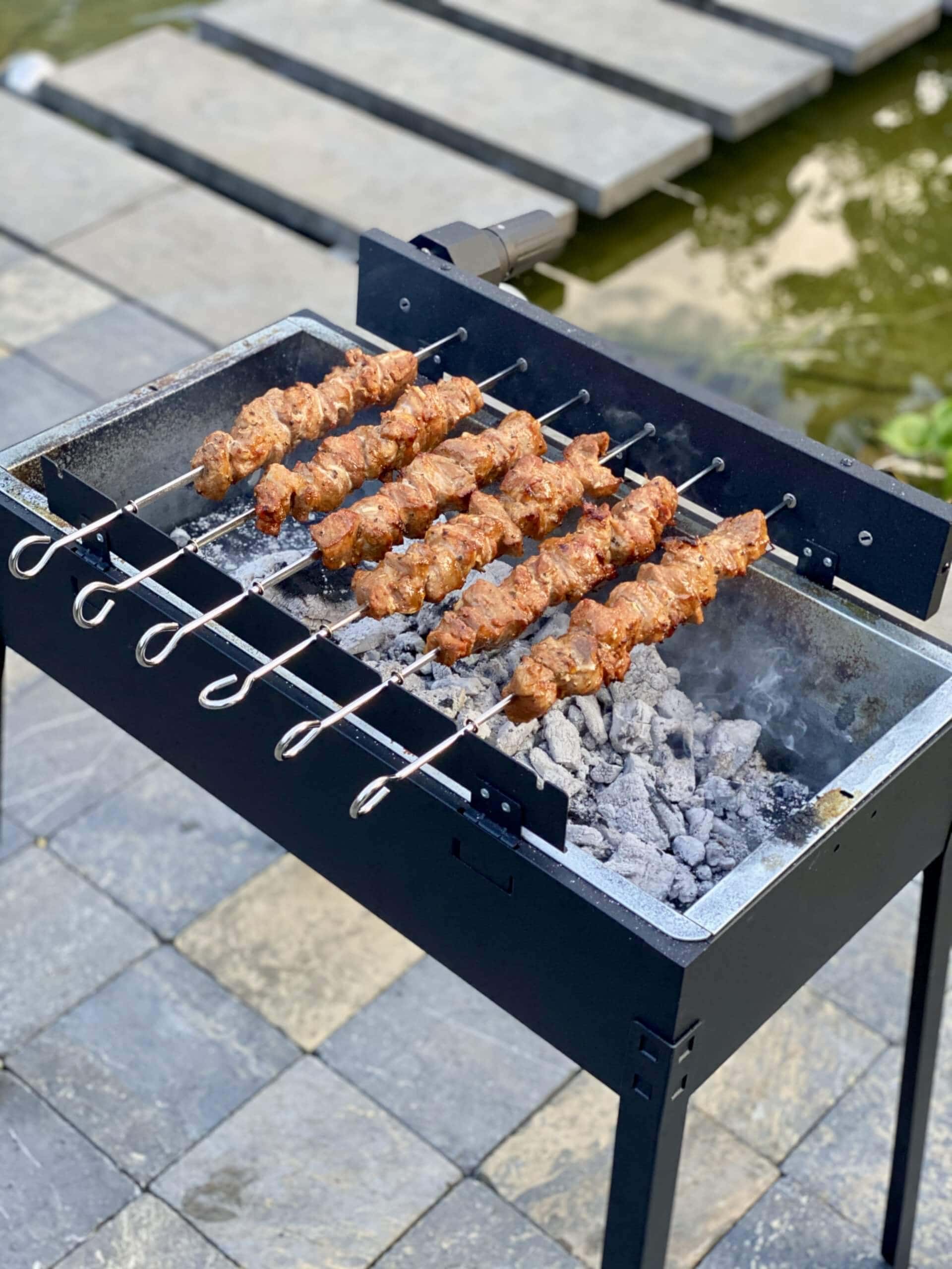 Fleisch nun aufspießen und anschließend auf dem Grill oder in einer Pfanne garen und servieren.