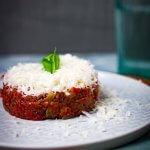 Mit einem Servierring anrichten und nach Geschmack frischen Parmesan darüber reiben und mit einem leckeren Baguette servieren.