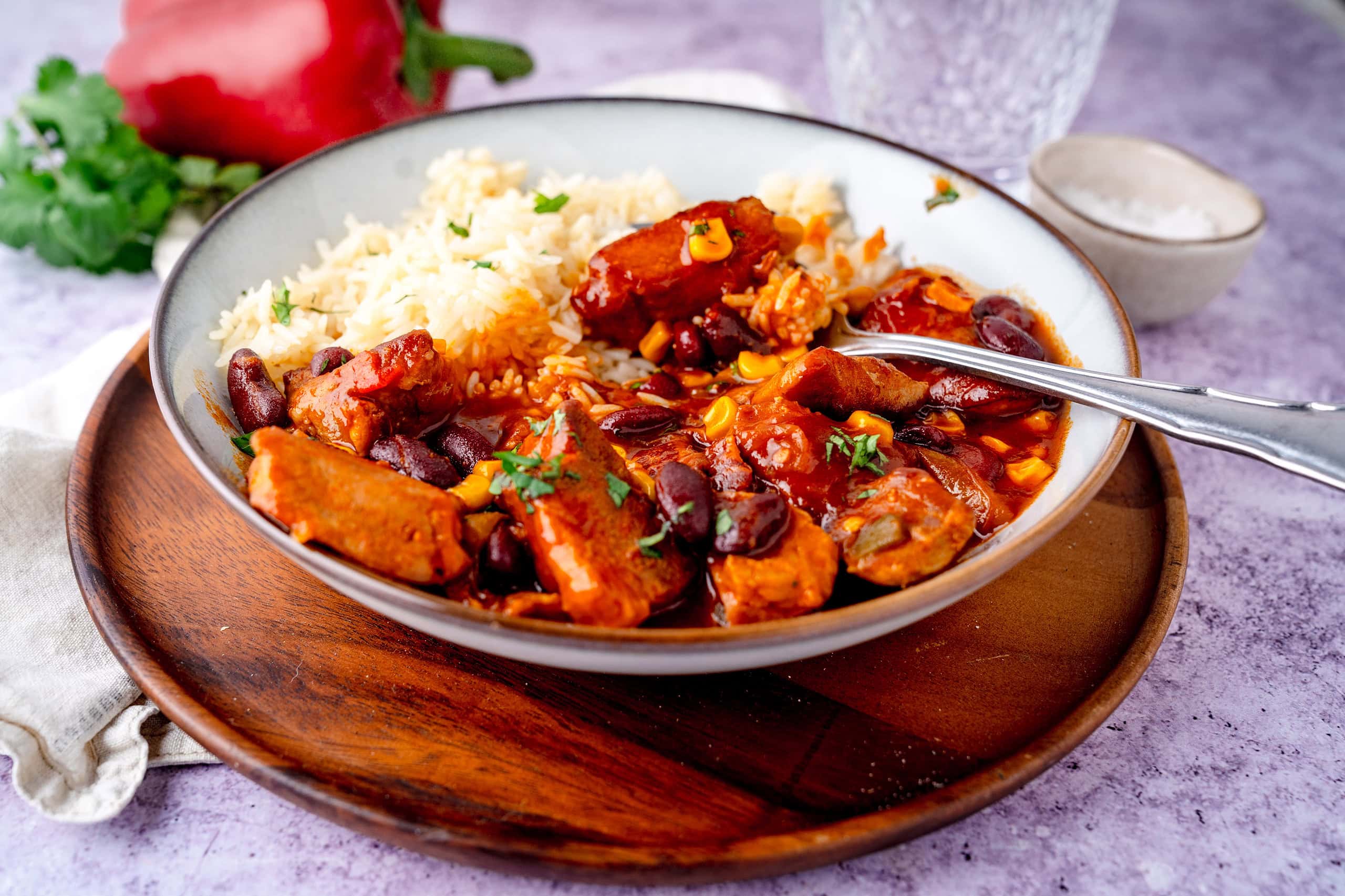 Entdecke das köstliche Tex Mex Gulasch, eine herzhafte Kombination aus zartem Schweinegulasch, Bacon, Paprika und würzigen Bohnen, die durch Texicana Salsa und Rinderbrühe ihren charakteristischen Geschmack erhält. Dieses einfache Rezept vereint traditionelle Gulasch-Zubereitung mit mexikanischem Flair und ist ideal für Fans von würzigen Gerichten. Die Zubereitung dauert knapp zwei Stunden und bietet eine sättigende Mahlzeit, die sich perfekt mit Reis, Baguette oder Nudeln kombinieren lässt. Perfekt für die nächste Familienmahlzeit oder als Highlight auf der Party!